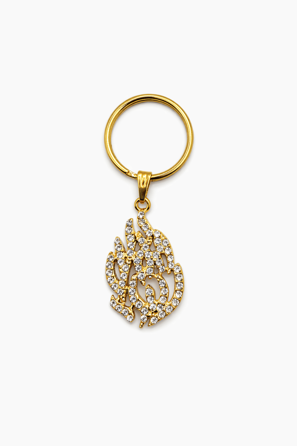 מחזיק מפתחות אלגנטי בעיצוב קליגרפי משובץ אבנים נוצצות בגימור יוקרתי.